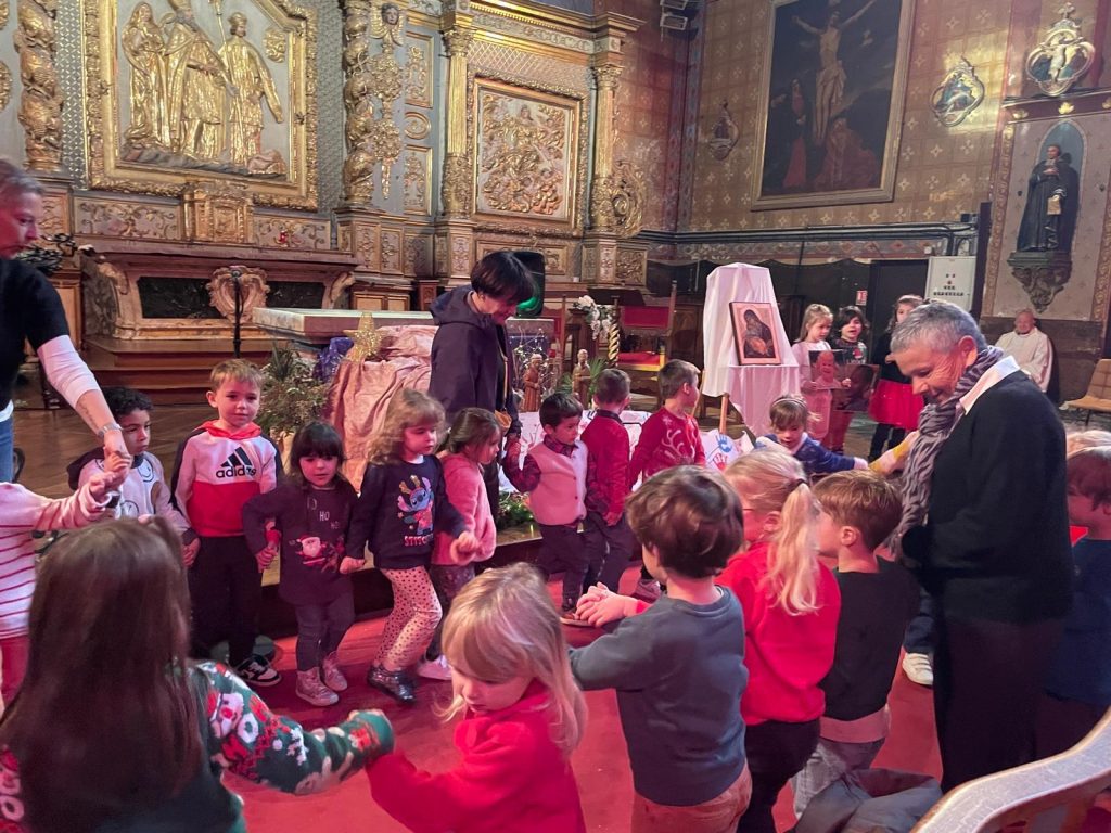 Les collégiens de l’aumônerie, encadrés par Mme Long, ont présenté une saynète de Noël. Les plus jeunes, les élèves de l’école, ont ensuite interprété plusieurs chants traditionnels de Noël, accompagnés par Mme Lanticq, qui a su transmettre leur énergie et leur enthousiasme.